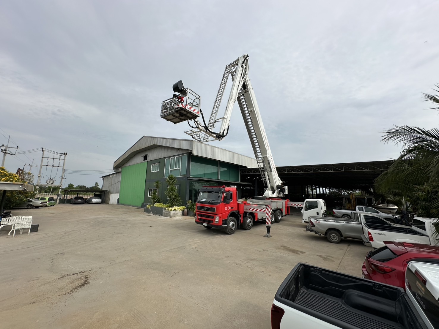 ซึ่งเป็นรถที่ใช้สำหรับปฏิบัติการในที่สูง มีความสามารถในการยืดกระเช้าขึ้นไปถึงระดับความสูงของอาคารหลายชั้น เพื่อใช้ในการดับเพลิง, กู้ภัย, หรือปฏิบัติงานอื่นๆ